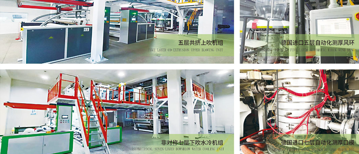 C、具有自主知識(shí)產(chǎn)權(quán)的、用于奶粉、鮮奶、肉制品、米類(lèi)抽真空七層共擠對(duì)稱(chēng)和非對(duì)稱(chēng)(PA/PET/EVOH/CPP/PE任意組合)多功能原材料薄膜及發(fā)泡膜。